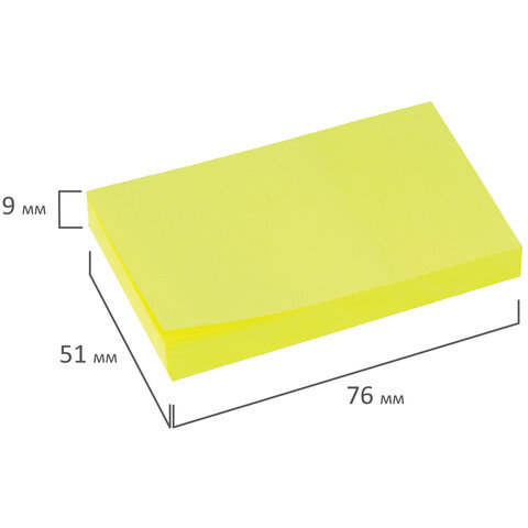 Блок самоклеящийся (стикеры), BRAUBERG, НЕОНОВЫЙ, 76х51 мм, 90 листов, желтый, 122699