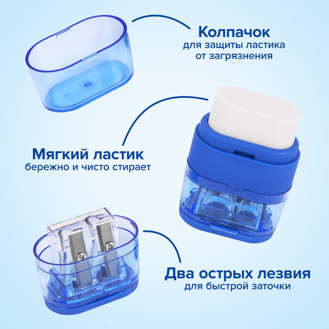 • Точилки с ластиком 2 в 1 BRAUBERG "Double" – предмет №1 в паре с карандашом на рабочем столе в офисе, на школьной парте или дома.