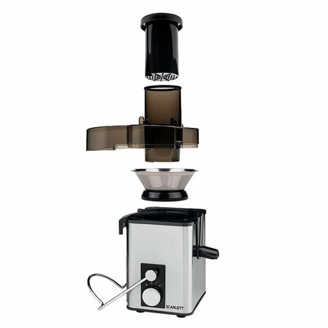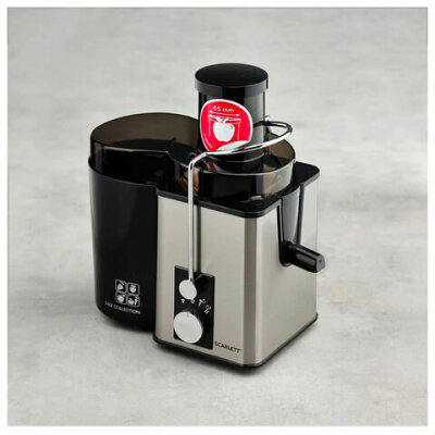 Соковыжималка SCARLETT SC-JE50S53, 1000 Вт, стакан 0,6 л, емкость жмыха 1 л, пластик, сталь/черный