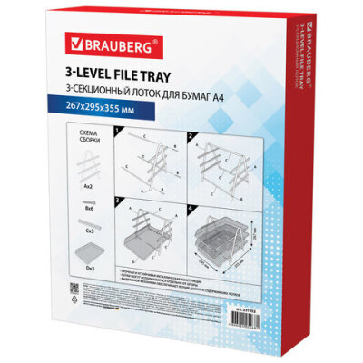 Горизонтальный трехсекционный лоток для бумаг BRAUBERG "Germanium" компактно сохранит на рабочем столе документацию, проспекты, каталоги и другую продукцию формата А4.