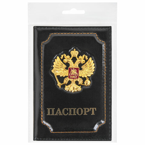 Обложка для паспорта натуральная кожа шик, 3D герб + тиснение "ПАСПОРТ", черная, BRAUBERG, 238201