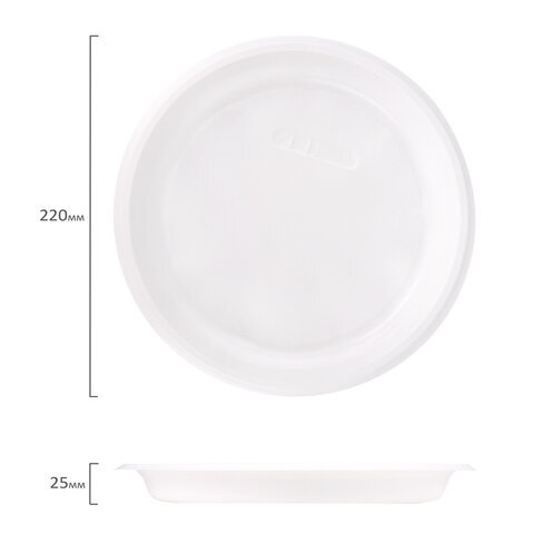 Одноразовые тарелки плоские, КОМПЛЕКТ 100 шт., пластик, d=220 мм, СТАНДАРТ, белые, ПП, холодное/горячее, LAIMA, 602649