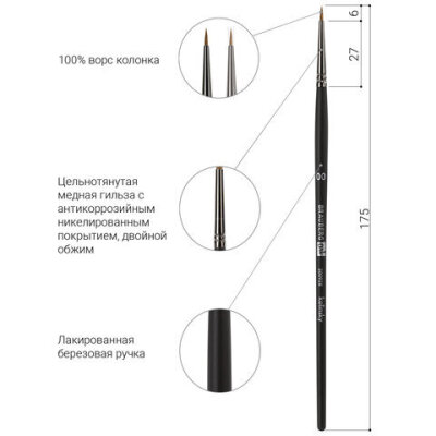 Кисть BRAUBERG ART "CLASSIC" прекрасно подходит для работы жидкими красками. Не теряет жесткость при намокании и позволяет удерживать максимальное количество краски в пучке. Предназначена для растушевки краски, смешивания и смягчения контрастов и фактуры.