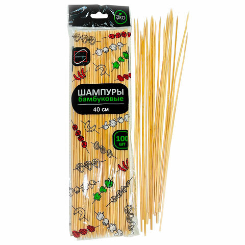 Шпажки-шампуры для шашлыка бамбуковые 40 см, 100 штук, КП, 140639