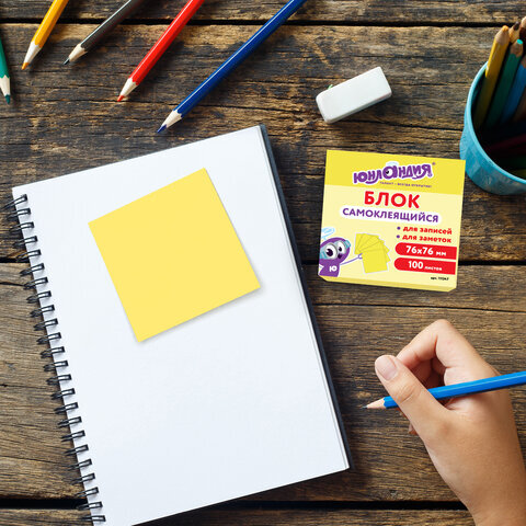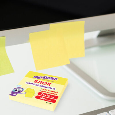 Блок самоклеящийся (стикеры) ЮНЛАНДИЯ 76х76 мм, 100 листов, желтый, 111347
