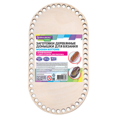 Донышки деревянные для вязания овальные, 2 шт., 24,5х13 см, BRAUBERG HOBBY, 665318
