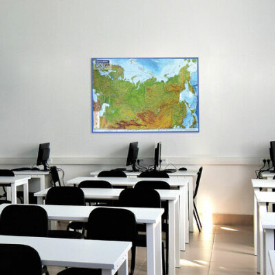 • На физической карте России BRAUBERG отображаются названия рек и морей, городов и областей, гор и вулканов.