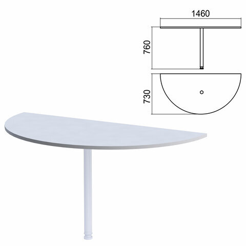 Стол приставной полукруг "Арго", 1460х730 мм, БЕЗ ОПОРЫ, серый