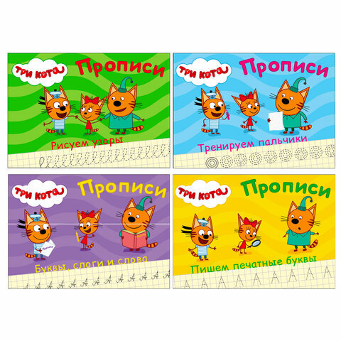 Пропись "ТРИ КОТА, 3-5 лет", АССОРТИ, А5, 140х203 мм, 16 стр., ПП