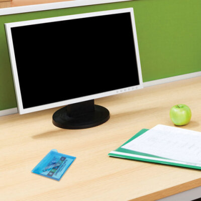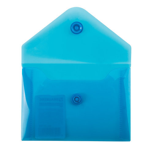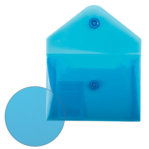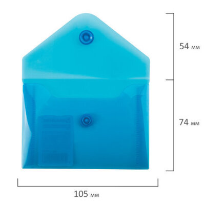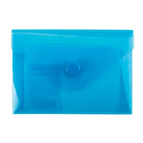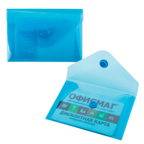 Папка-конверт с кнопкой МАЛОГО ФОРМАТА (74х105 мм), А7 (для дисконтных, банковских карт, визиток) прозр, синяя, 0,18 мм, BRAUBERG, 227323