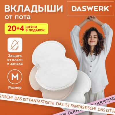 Вкладыши от пота, прокладки для подмышек, 24 шт., 2 цвета: белый / бежевый, размер M, DASWERK (ДАСВЕРК), 609984