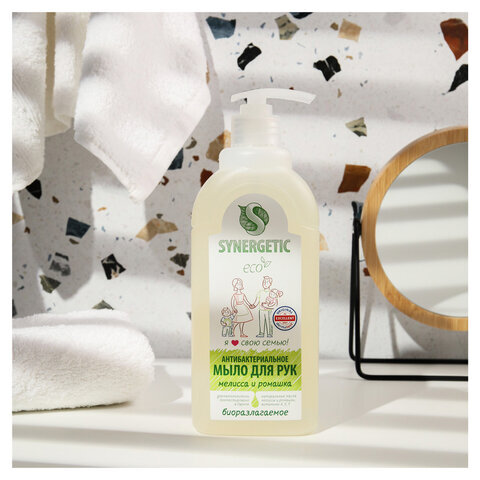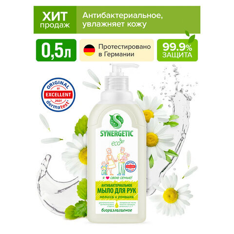 Мыло жидкое антибактериальное 500 мл SYNERGETIC "Мелисса и ромашка", 105061