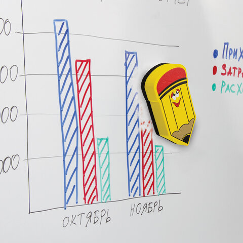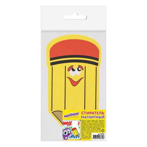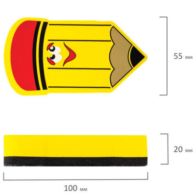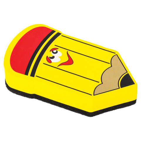 Стиратель магнитный для магнитно-маркерной доски ЮНЛАНДИЯ "Карандаш", 55х100 мм, желтый с рисунком, 237507