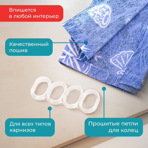 Шторка для ванной ПОЛИЭСТЕР, 180х180 см, кольца в комплекте, МОРЕ, PRIMILA (ПРИМИЛА), 700077