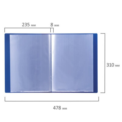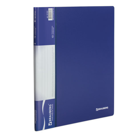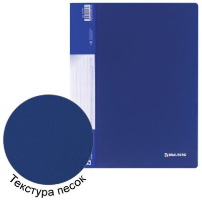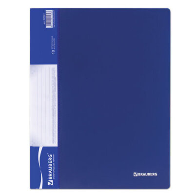 Папка 10 вкладышей BRAUBERG стандарт, синяя, 0,6 мм, 221591