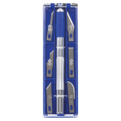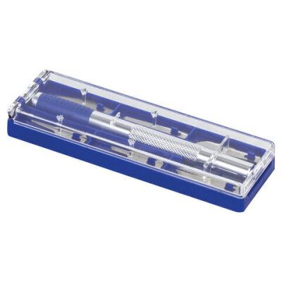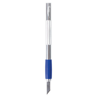 Макетный нож предназначен для для аккуратной и точной работы по бумаге, пластику, дереву и прочим материалам. Для безопасного извлечения лезвий из футляра необходимо использовать магнит, который встроен в тыльную сторону рукоятки.