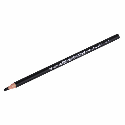 Карандаш (1 штука) угольный BRAUBERG ART CLASSIC, МЯГКИЙ, круглый, корпус черный, заточенный, 181290