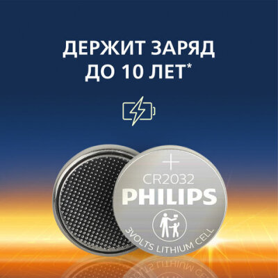 Литиевые батарейки для электронных устройств PHILIPS Lithium CR2032. Технология высшего качества для миниатюрных устройств. Долгий срок службы в повседневных портативных электронных устройствах.