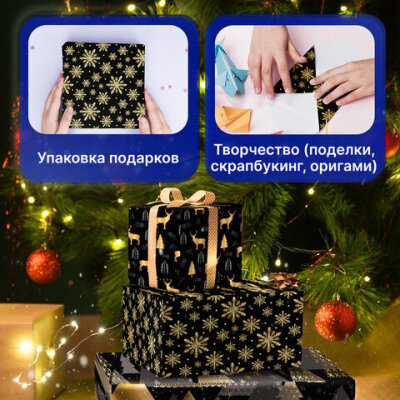 Набор упаковочной бумаги "Black&Gold" ЗОЛОТАЯ СКАЗКА отлично подходит для упаковки подарков, а также для рукоделия, декора и других дизайнерских решений.