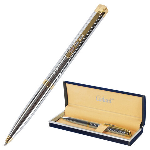 Ручка подарочная шариковая GALANT "Barendorf", корпус серебристый с гравировкой, золотистые детали, пишущий узел 0,7 мм, синяя, 141011