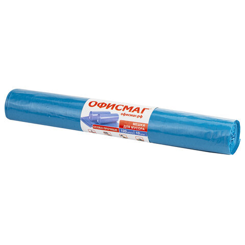 Мешки для мусора 120 л синие в рулоне 10 шт. особо прочные, ПВД 40 мкм, 70х110 см, ОФИСМАГ, 602929
