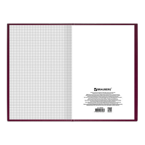 Книга учета 96 л., клетка, твердая, бумвинил, блок офсет, А4 200х290 мм, BRAUBERG, бордовая, 130224