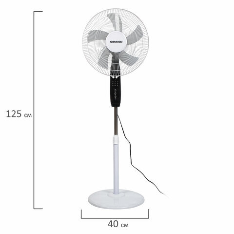 Вентилятор напольный, 3 режима, пульт ДУ, SONNEN TF-45W-40-520, d=40 см, 45 Вт, белый, 454788, FS-40-520