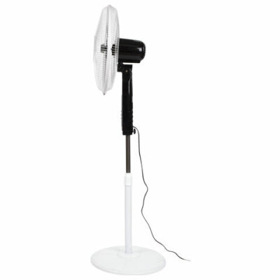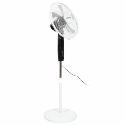 Вентилятор SONNEN TF-45W-40-520 напольного типа привлекает внимание устойчивой конструкцией и стильным черно-белым дизайном элегантного корпуса из металла и пластика.