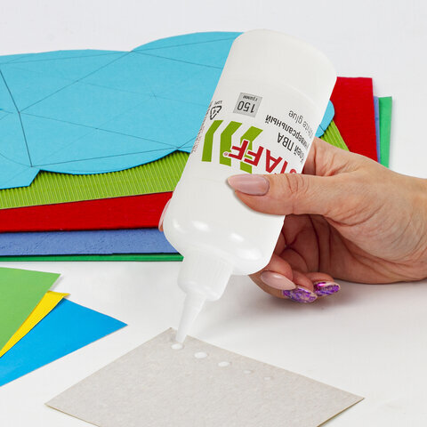 Клей ПВА STAFF применяется для склеивания бумаги, картона, фотографий, дерева, ткани и кожи.