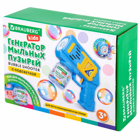 Мыльные пузыри Бластер Генератор с баком и подсветкой, раствор 80 мл, BRAUBERG KIDS, 665147