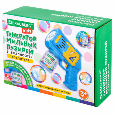 Генератор мыльных пузырей BRAUBERG KIDS доставит ребенку массу удовольствия и поможет отлично развлечься на любом празднике. Игры с мыльными пузырями развивают координацию движений и учат следить за движущимися предметами.