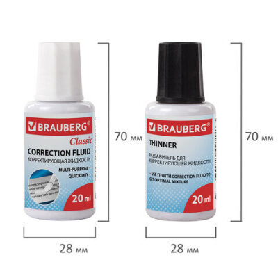Корректирующий набор BRAUBERG, КОРРЕКТИРУЮЩАЯ ЖИДКОСТЬ + РАЗБАВИТЕЛЬ, 20+20 мл, 220454