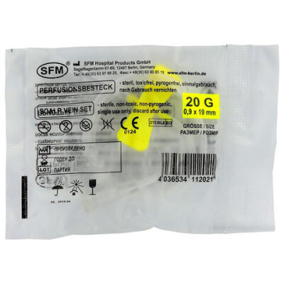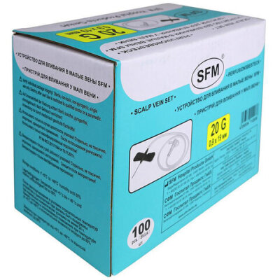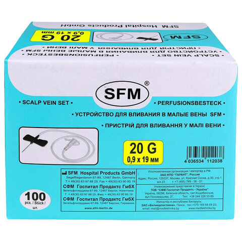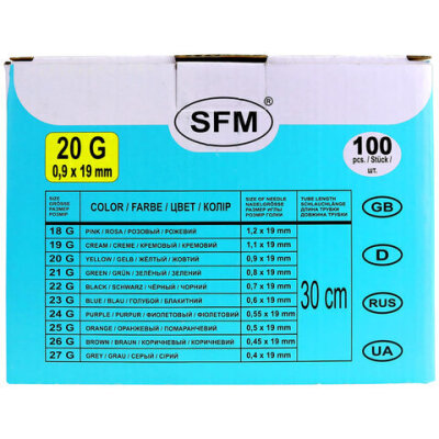 Иглы-бабочки для вливания в малые вены SFM 0,9 х 19 - 20G, КОМПЛЕКТ 100 штук, LUER