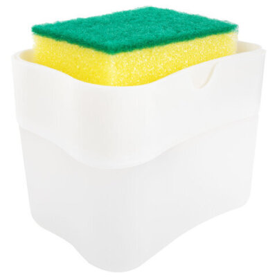 Диспенсер/дозатор для моющего средства, органайзер + губка, БЕЛЫЙ, 7х14х11 см, ЛЮБАША, 700039