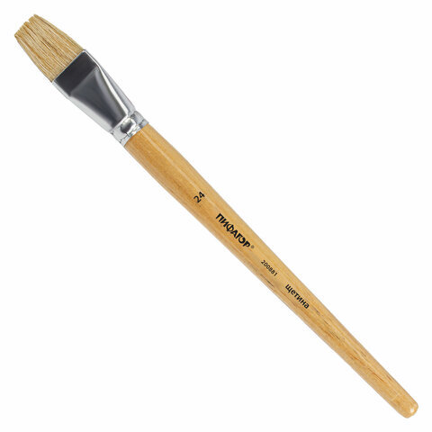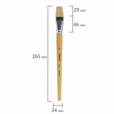 Кисть ПИФАГОР, ЩЕТИНА, плоская, № 24, деревянная лакированная ручка, пакет с подвесом, 200881