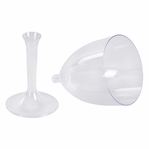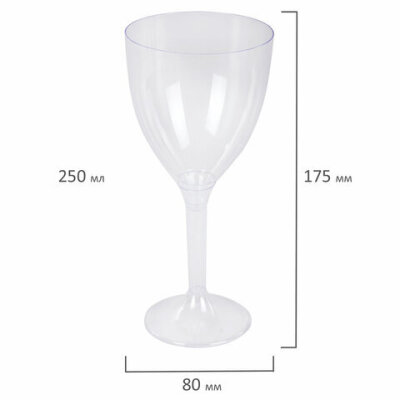 Бокал одноразовый 250 мл для вина пластиковый, прозрачная высокая ножка, ВЗЛП, 1013