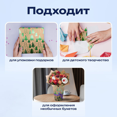 Новогодняя упаковочная бумага с эффектом фольгирования "Green Trees" ЗОЛОТАЯ СКАЗКА отлично подходит для упаковки подарков, а также для рукоделия, декора и других дизайнерских решений.