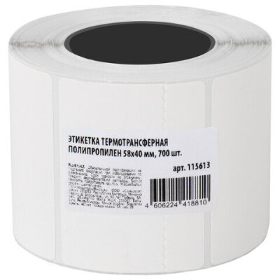Этикетки термотрансферные, ПОЛИПРОПИЛЕН, 58х40 мм, 700 этикеток в ролике, 115613