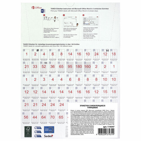 | Размер этикетки (ДхШ) | 210х297 мм |