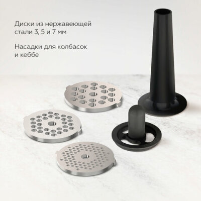 | Насадки в комплекте | для кеббе, для приготовления колбас |