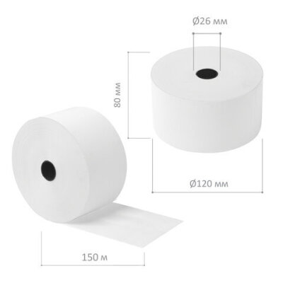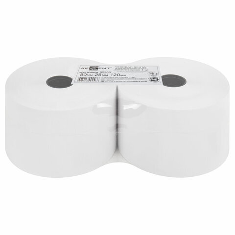 Чековая лента ТЕРМОБУМАГА 80 мм (диаметр 120 мм, длина 150 м, втулка 26 мм), слой наружу, КОМПЛЕКТ 2 шт., AKZENT, 52366