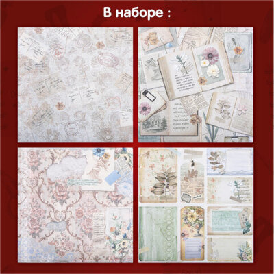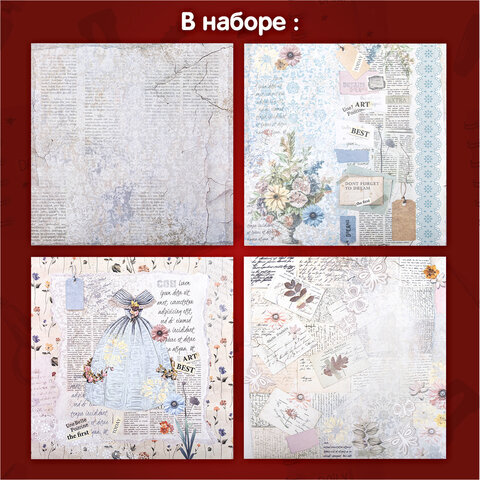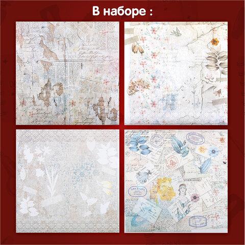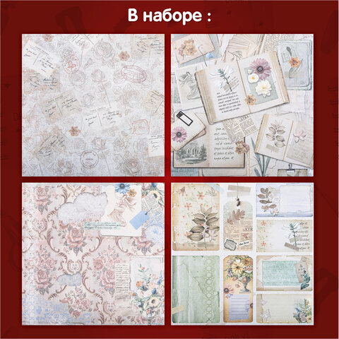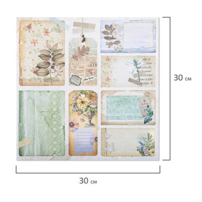 Бумага для скрапбукинга 30х30 см, "В бежевых тонах", двусторонняя, 12 листов, 180 г/м2, ОСТРОВ СОКРОВИЩ, 665437
