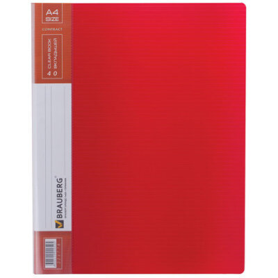 Папка 40 вкладышей BRAUBERG "Contract", красная, вкладыши-антиблик, 0,7 мм, бизнес-класс, 221778