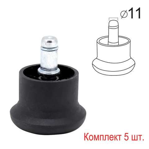 Опоры стационарные (глайдеры) для кресла, комплект 5 шт., пластиковые, шток d - 11 мм, цвет черный