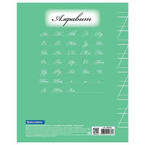Тетрадь 12 л. BRAUBERG ЭКО "5-КА", косая линия, обложка картон 170 г/м2, ЗЕЛЕНАЯ, 104762