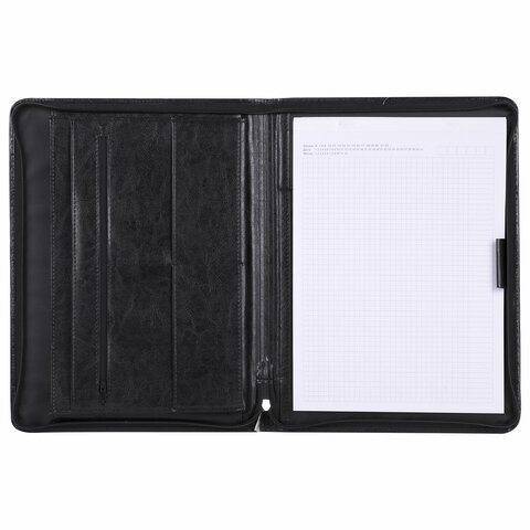 Папка "Лидер" из искусственной кожи черного цвета – стильный и функциональный аксессуар для офисных работников.