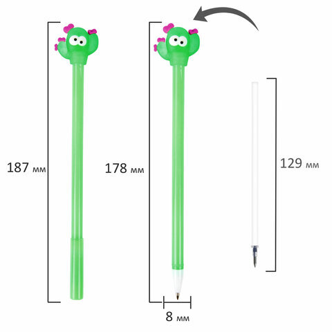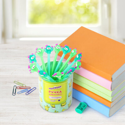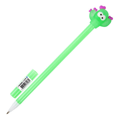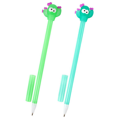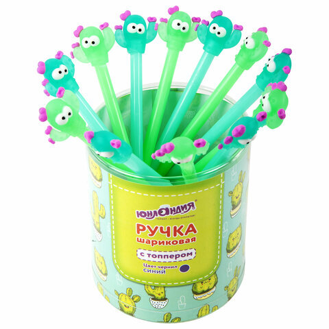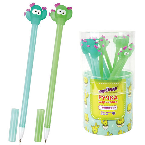 Ручка с топпером шариковая ЮНЛАНДИЯ "Цветущий кактус", корпус ассорти, СИНЯЯ, пишущий узел 0,7 мм, 143781