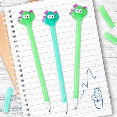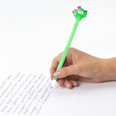 Шариковая ручка ЮНЛАНДИЯ "Цветущий кактус" с мягким силиконовым корпусом.