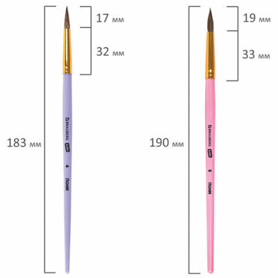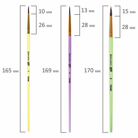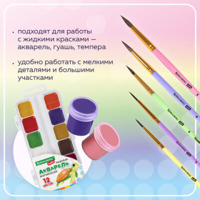 Набор из пяти кистей разного размера BRAUBERG KIDS позволяет начинающим художникам решать любые творческие задачи в детском саду, школе и дома.