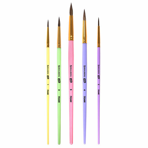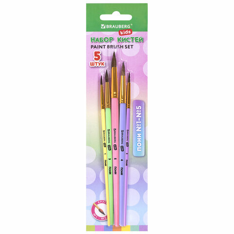 Кисти ПОНИ набор 5 шт. (круглые № 1, 2, 3,4, 5), блистер, BRAUBERG KIDS, 201072